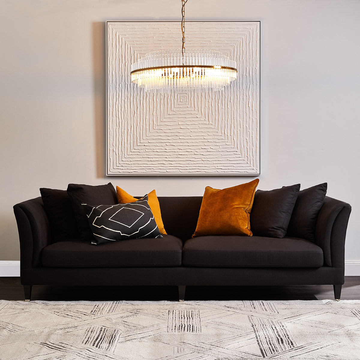 Grand in size and sculptural form, the Lawrence pendant finds a sense of balance between exceptional elegance and extraordinary drama. Crafted with hundreds of clear glass rods delicately dangling from a polished brass frame, the design echoes art deco glamour. The Lawrence pendant commands any living space