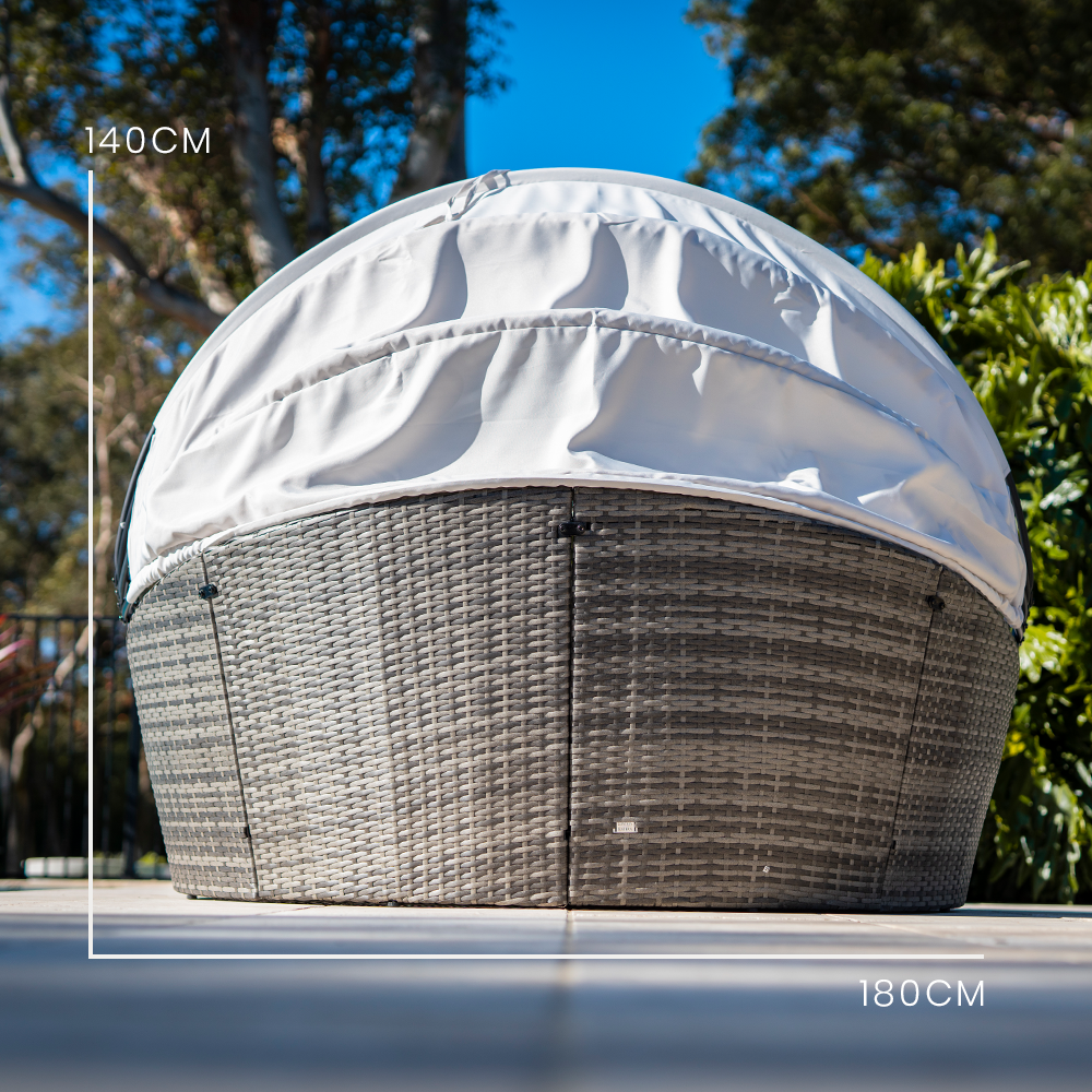 LONDON RATTAN 3PC Outdoor Daybed Patio Rattan Sofa Sun Lounge Furniture Grey Wicker Off White Canopy