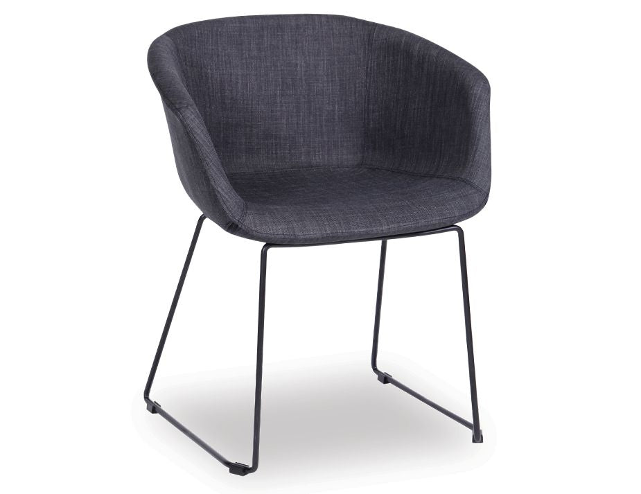 The Lonsdale Armchair in black sled with charcoal fabric is a trendy and versatile seating solution for commercial spaces such as hotels and restaurants.