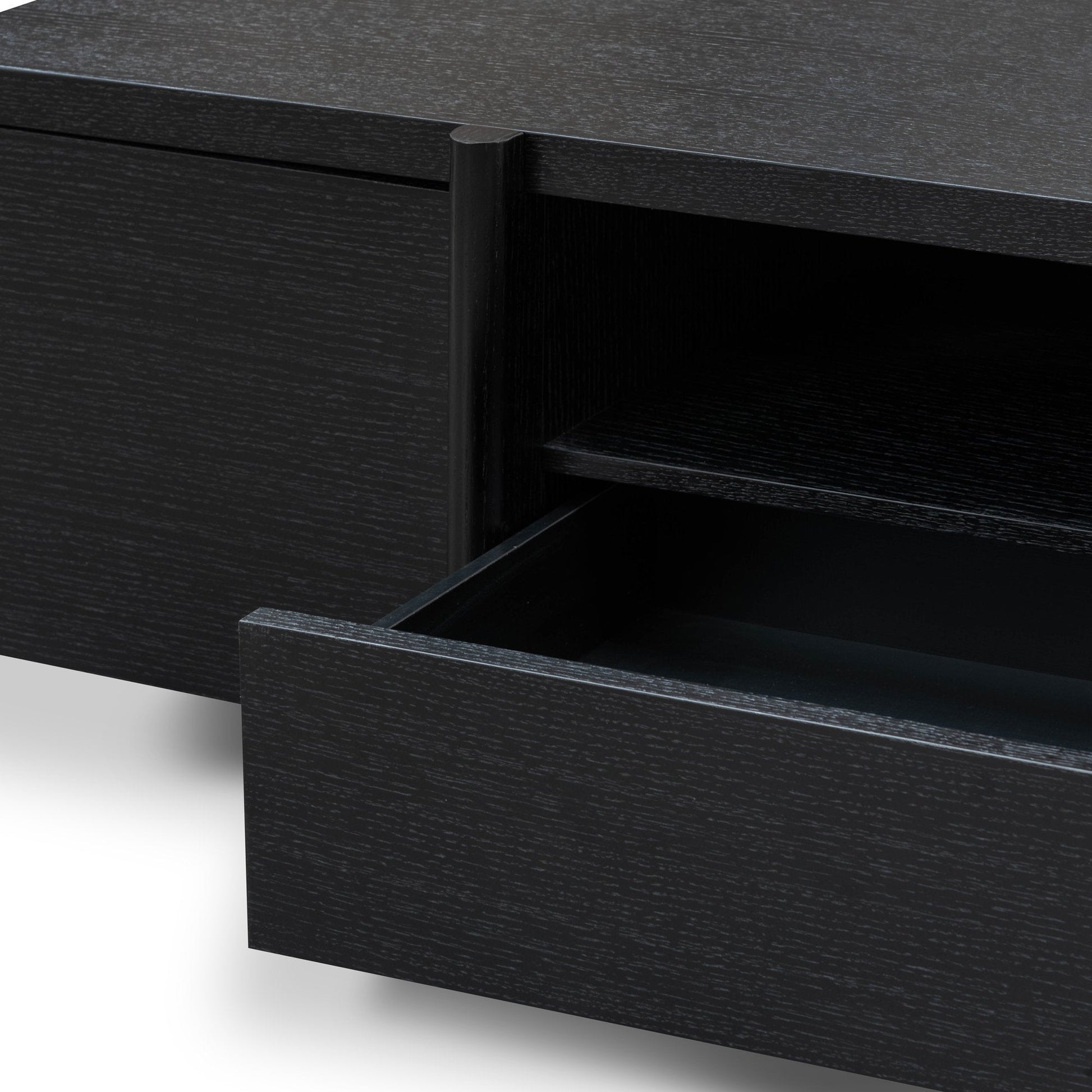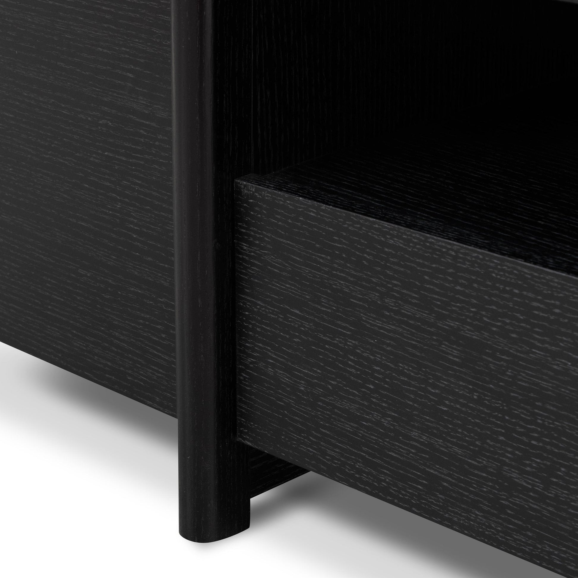Lowline 2.1m Wooden TV Entertainment Unit - Black Oak is the perfect foundation to create your updated living room style. Featuring ample storage space to house media items, this modern entertainment unit will ground your space with its functional and timeless style. Elevate your living room with a functional and timeless oak entertainment unit, offering ample storage space for your media items and serving as the perfect foundation for your updated style.
