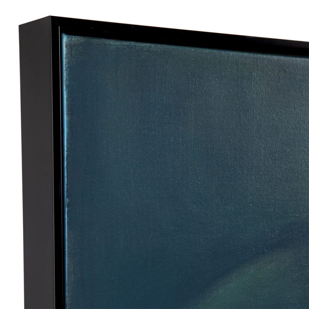 Reminiscent of exotic locations, Maracas Escape oil on canvas features an alluring colour palette of turquoise and deep oceanic blues taken from the azure waters of Maracas beach in Trinidad & Tobago. Gently curved forms create a sense of serenity while the deeper ocean depths offer a calming place to rest. Displayed in a matte black shadow box frame, Maracas Escape is hand painted in oil on quality canvas by skilled artists – so no two pieces are exactly the same