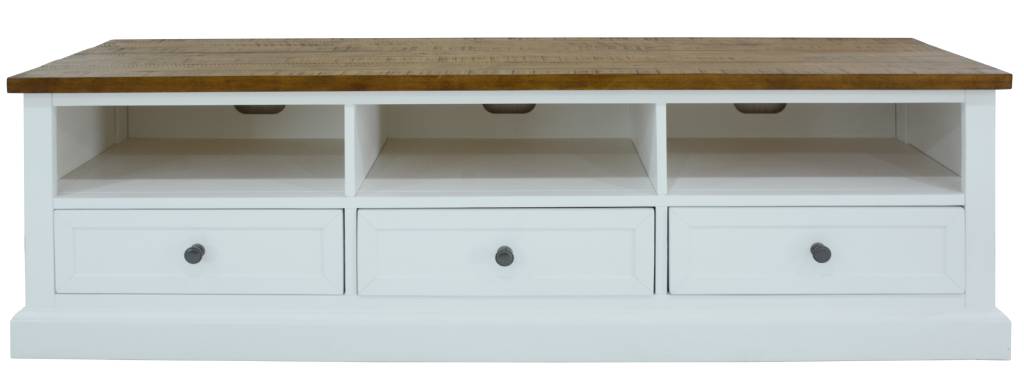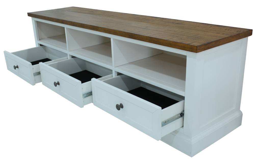 Introducing the Maxine large TV unit - the epitome of luxury and sophistication. Featuring a stunning white painted finish with natural tops and rough sawn detail, this unit exudes elegance. Complete with full extension drawers, adjustable hinges, and antique handles, the Maxinel is not only stylish but functional. Match it with our Arc or Café Chairs for a truly elite aesthetic.