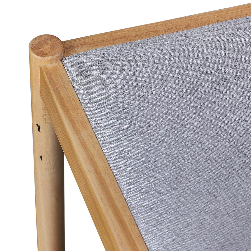 NZ ash wood frame 100% polyester with foam-filled cushion Natural finish on frame and detailing Curved wood backrest Sturdy round black legs Weight capacity: 130 kg Product comes fully assembled