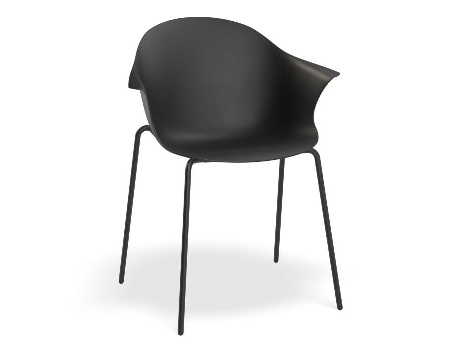 The Pebble Armchair in black with a shell seat offers the perfect solution for commercial outfitting and furniture needs. Designed with both style and durability in mind, this armchair is ideal for high-traffic environments, such as cafes, offices, and public spaces.