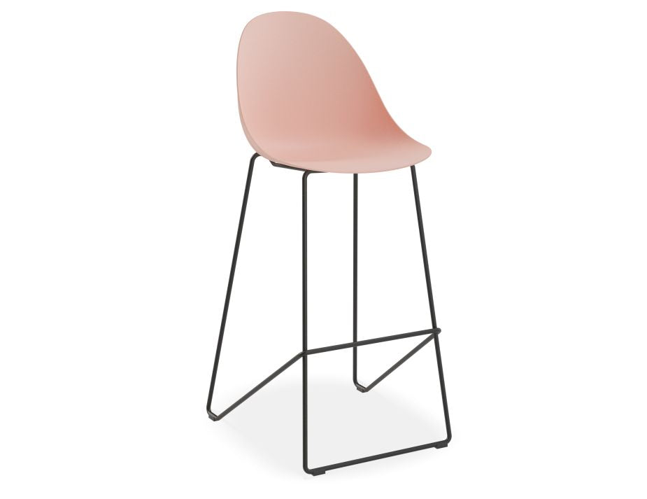 Pebble Soft Pink Stool Shell Seat - Bar Stool 76cm Seat Height - Black Frame