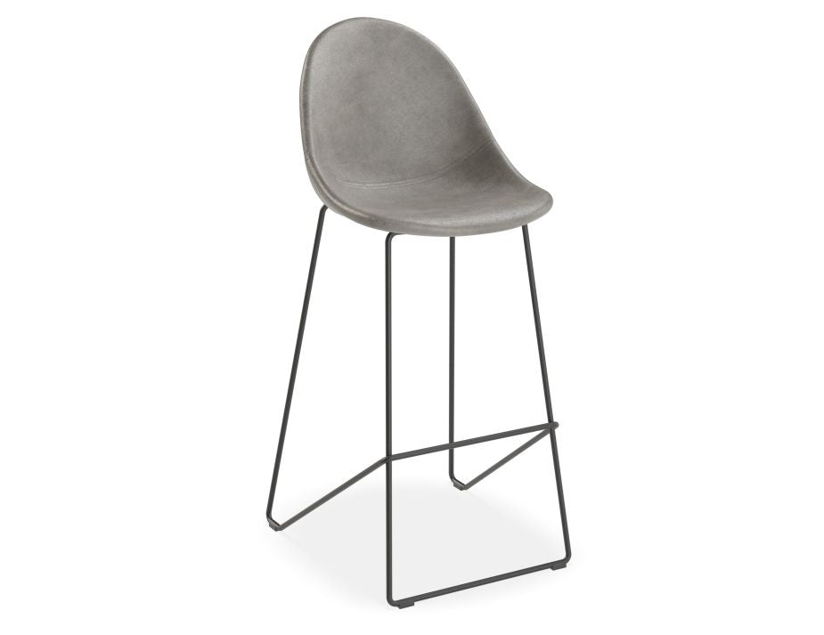 Pebble Stool Grey Upholstered Vintage Seat - Bar Stool 75cm Seat - Black Base