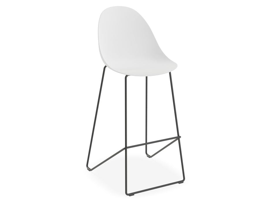 Pebble White Stool Shell Seat - Bar Stool 75cm Seat Height - Black Frame