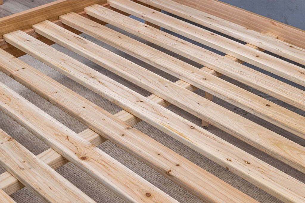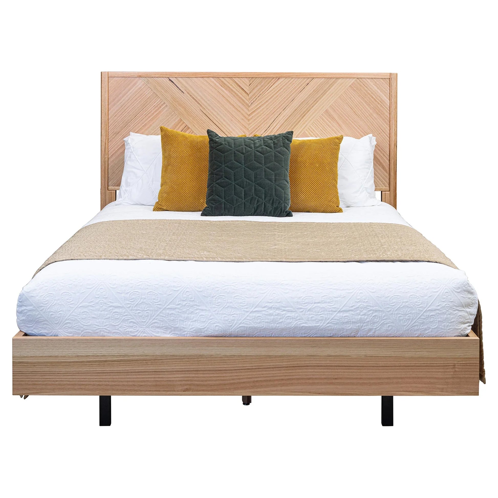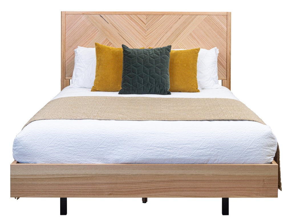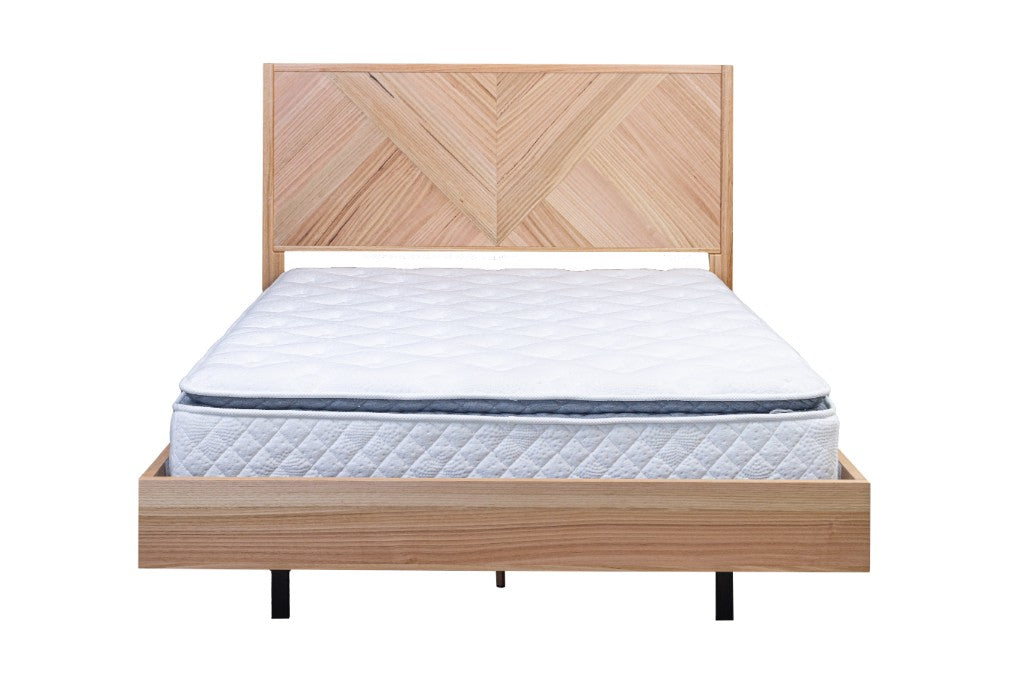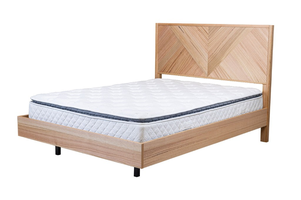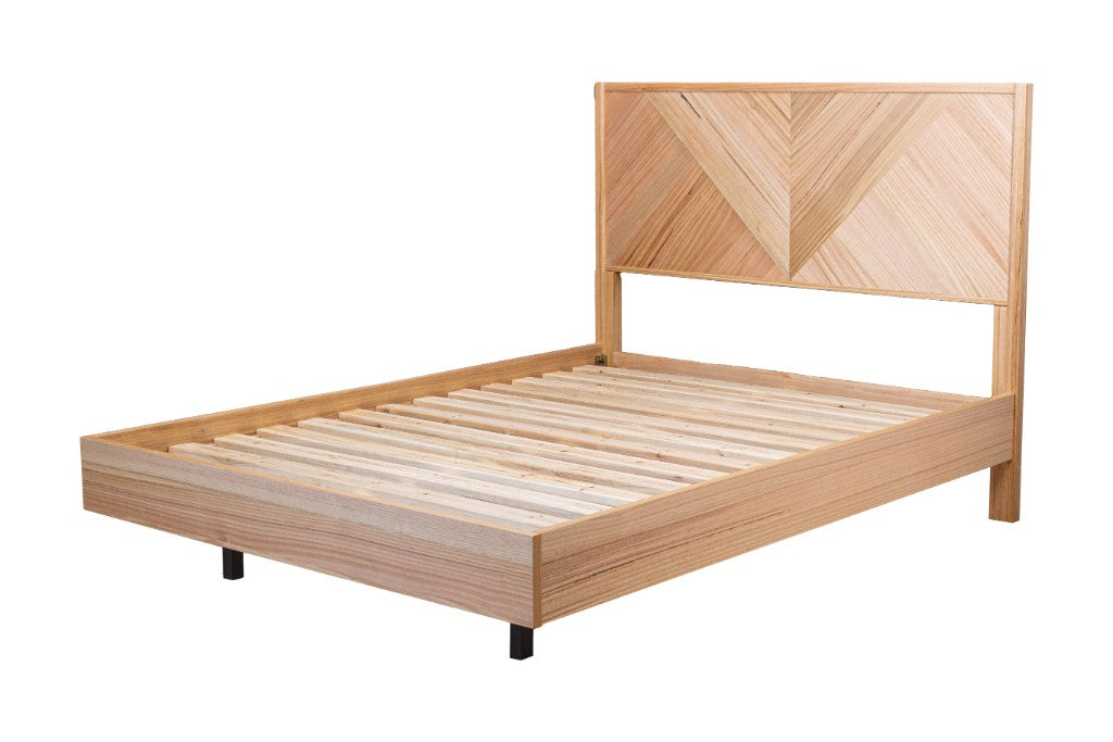 The Perisher Queen Bed offers a natural and luxurious addition to your bedroom. Crafted with solid and veneer Messmate timber, each piece is unique with a distinctive grain. The tall statement headboard, solid timber slat system, and metal legs provide both style and durability. The fully assembled case goods feature full extension runners, metal handles, and classic close design for extra strength and stability. Elevate your sleeping experience with this exclusive and sophisticated bed.