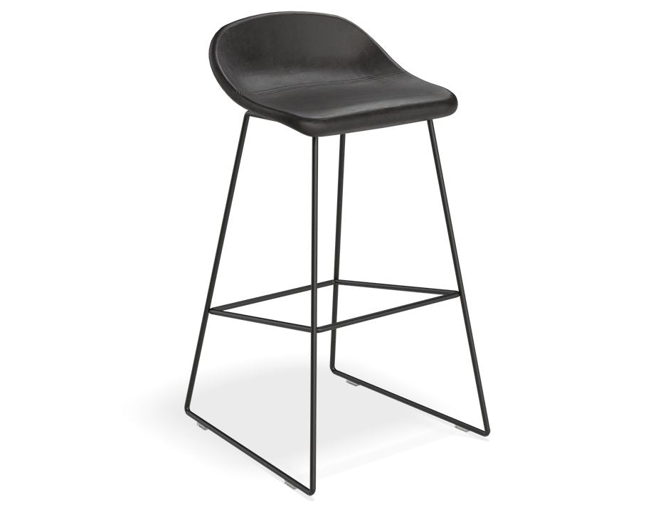 Introducing the Pop Stool with a sleek black frame and a vintage black seat, the perfect addition to any bar furniture collection.