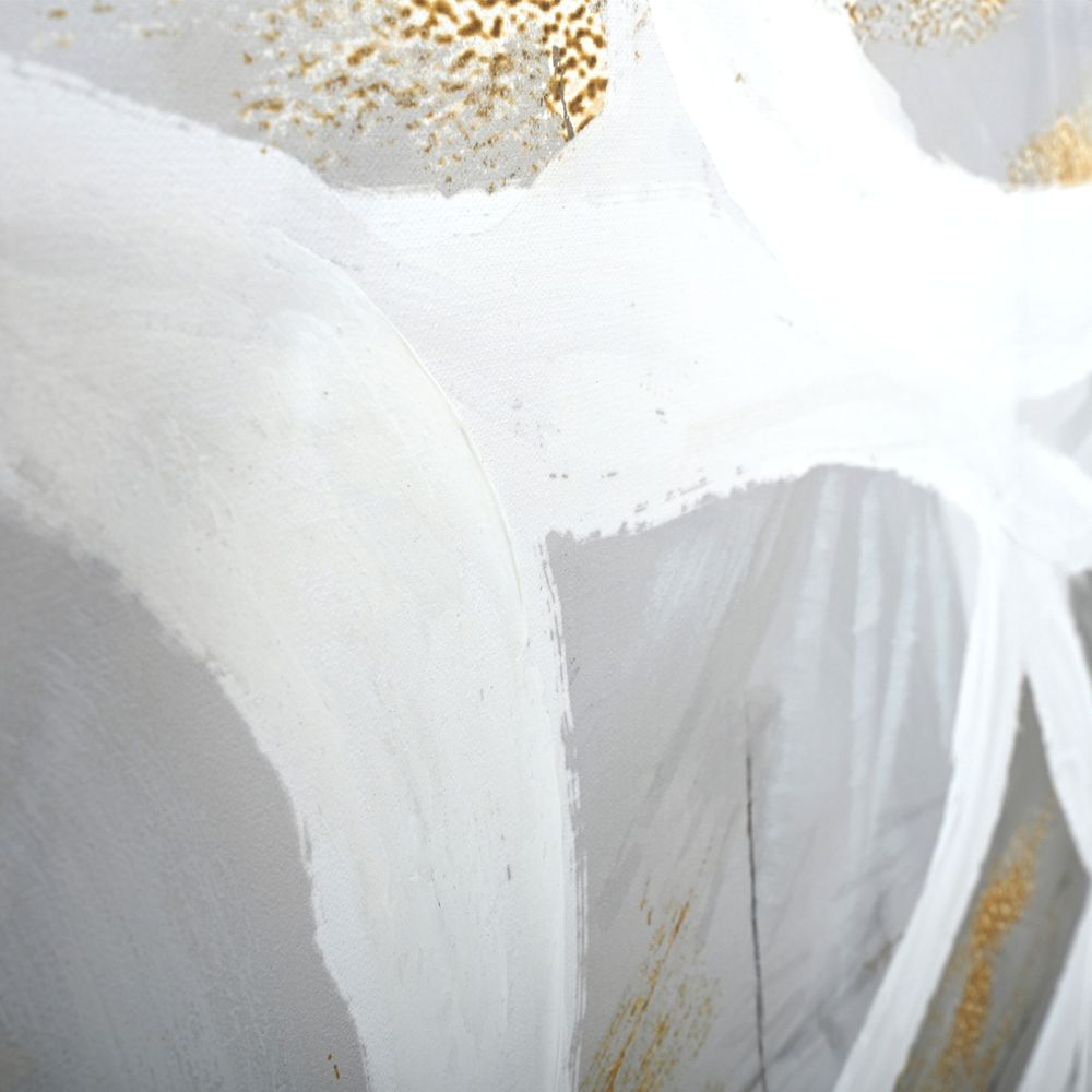 Rivers of Ideas Series I enhanced canvas print creates a serene mood through the use of flowing brush strokes and a fresh, neutral colour palette with metallic highlights. Designed to be paired with Rivers of Ideas Series II for ultimate effect, Rivers of Ideas is mounted in an elegant gold shadow box frame.