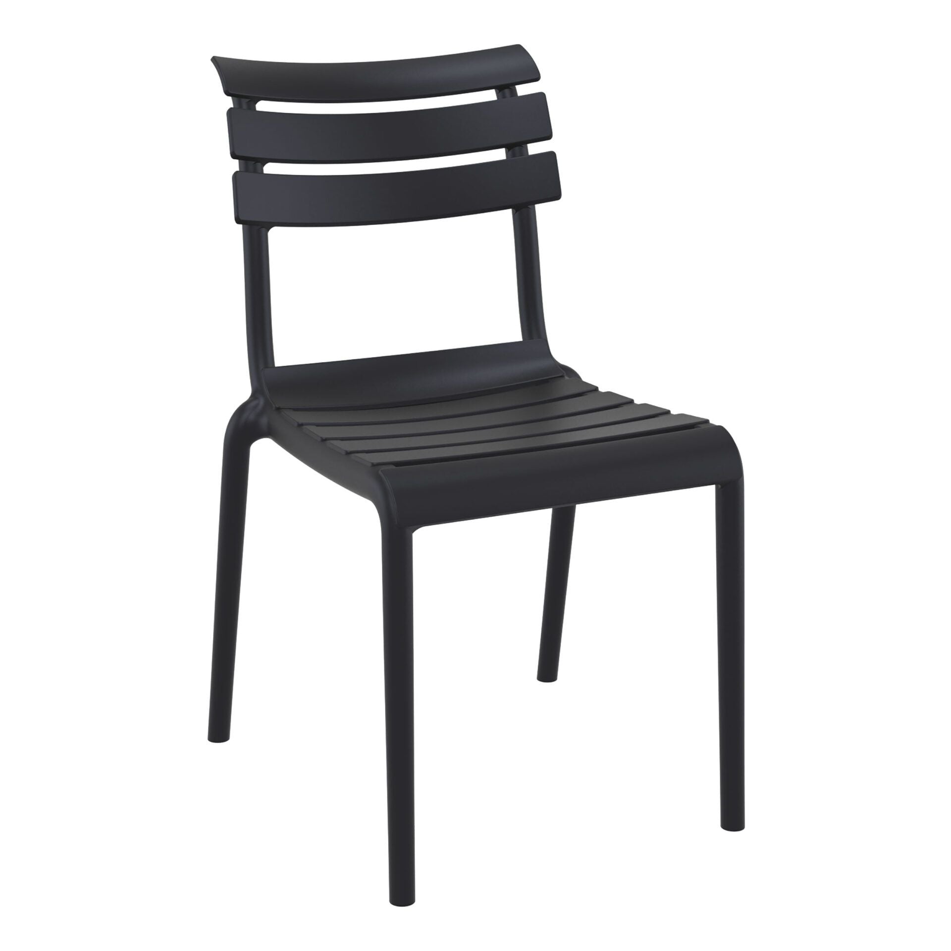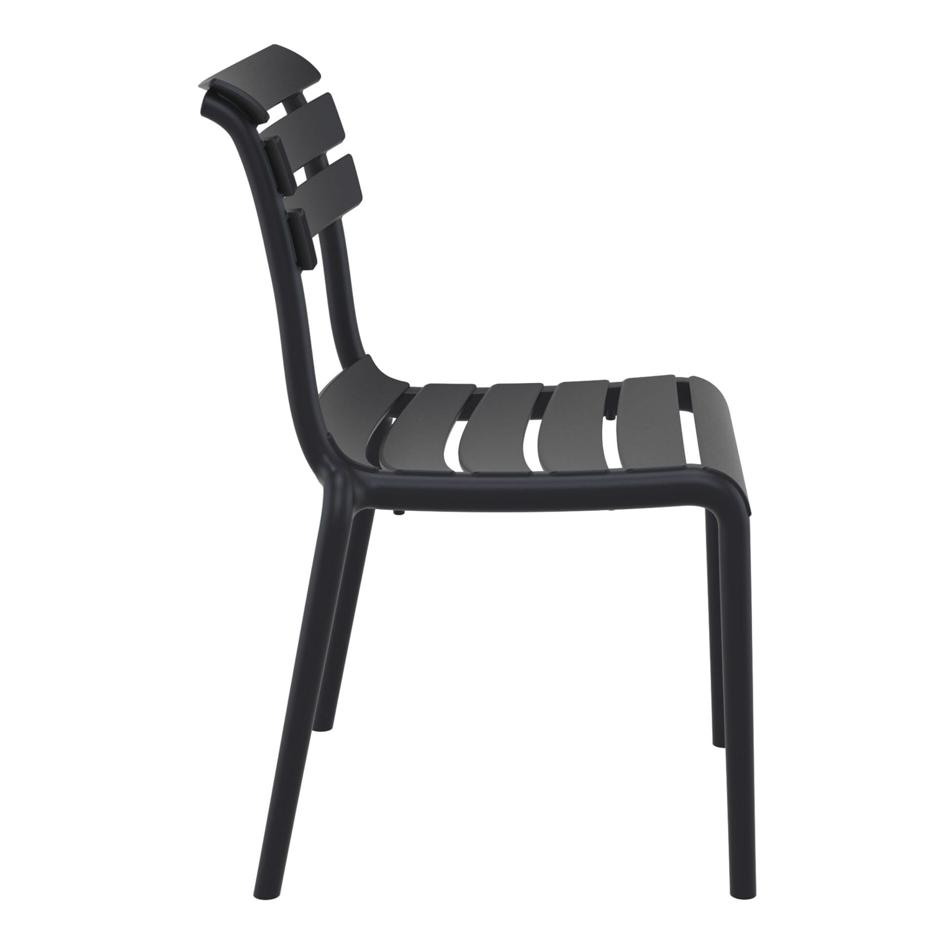 Exquisitely crafted in Europe with air moulding technology, this Keller Indoor / Outdoor Dining Chair - Black stackable chair boasts a neutral, refined aesthetics due to its polypropylene and glass fibre constitution. Further, CATAS tested for indoor/outdoor use and stackable up to 4-6 high, this chair conveys unparalleled sophistication.