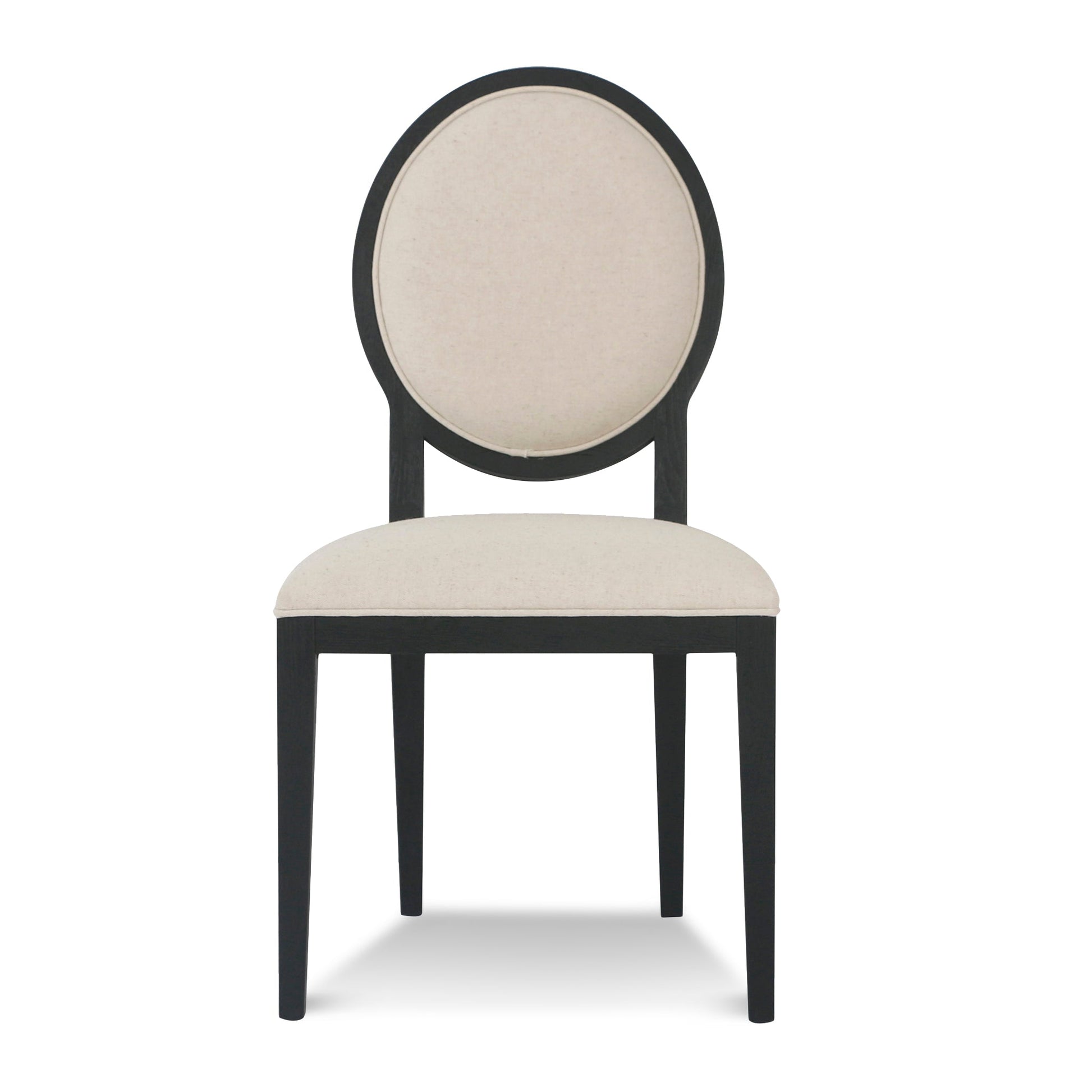 Inspired by the furniture style from the period of Louis XVI, Lula Light Beige Fabric Dining Chair - Black Frame represents style, aestheticism, and delight. It bodes the popularity and timelessness of the design.