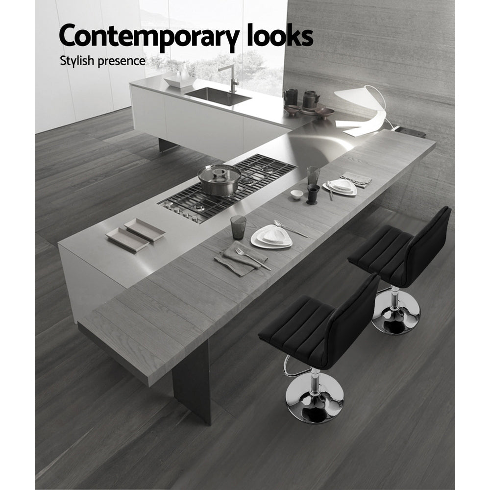 Artiss 2x Leather Bar Stools ARNE Swivel Bar Stool Kitchen Chairs Black Gas Lift Black