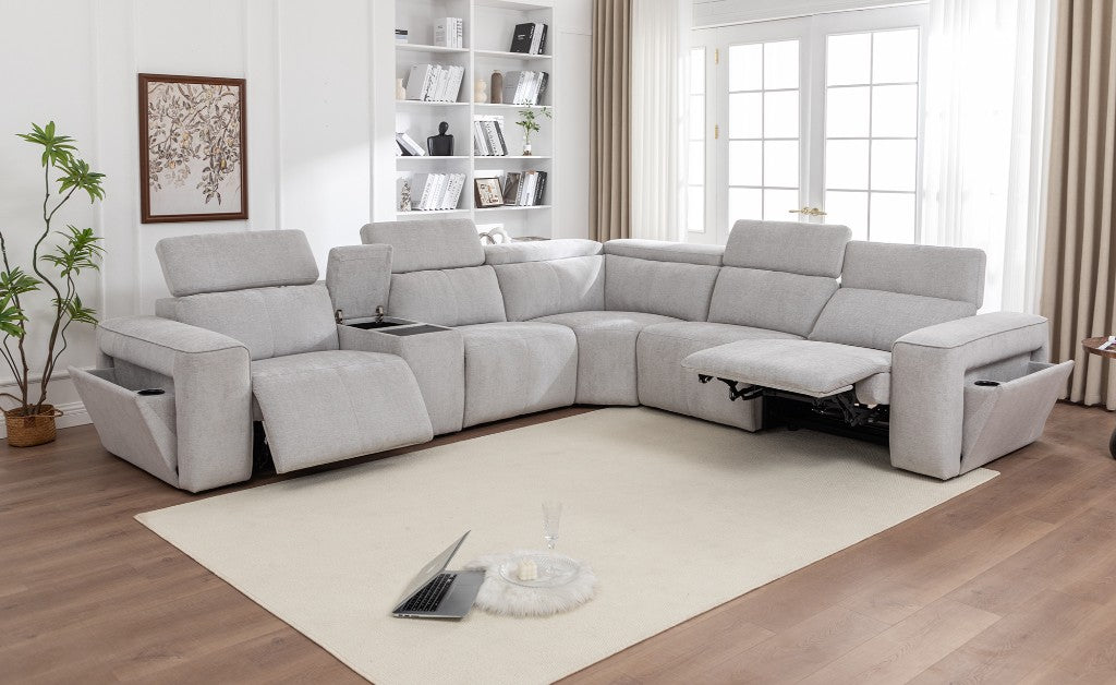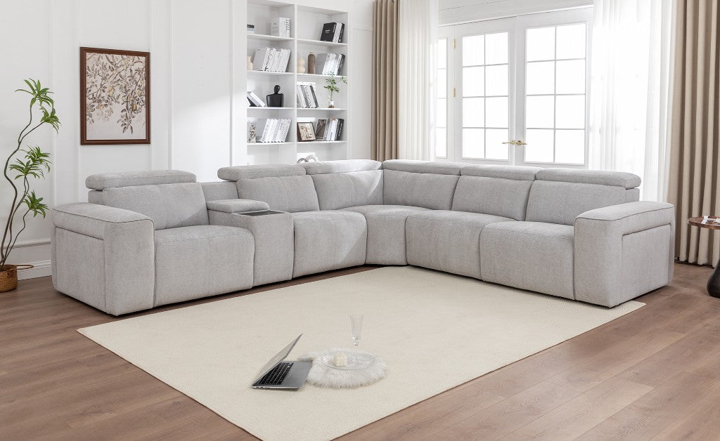 Experience refined comfort with the Skyler 6 seater modular recliner sofa. Designed for spacious living areas, its modular configuration offers versatile seating arrangements tailored to your lifestyle. Each recliner provides smooth, effortless adjustment, allowing you to unwind in personalized luxury. Crafted with premium materials, this sofa combines elegant aesthetics with durable construction, making it a sophisticated centerpiece for any modern home.