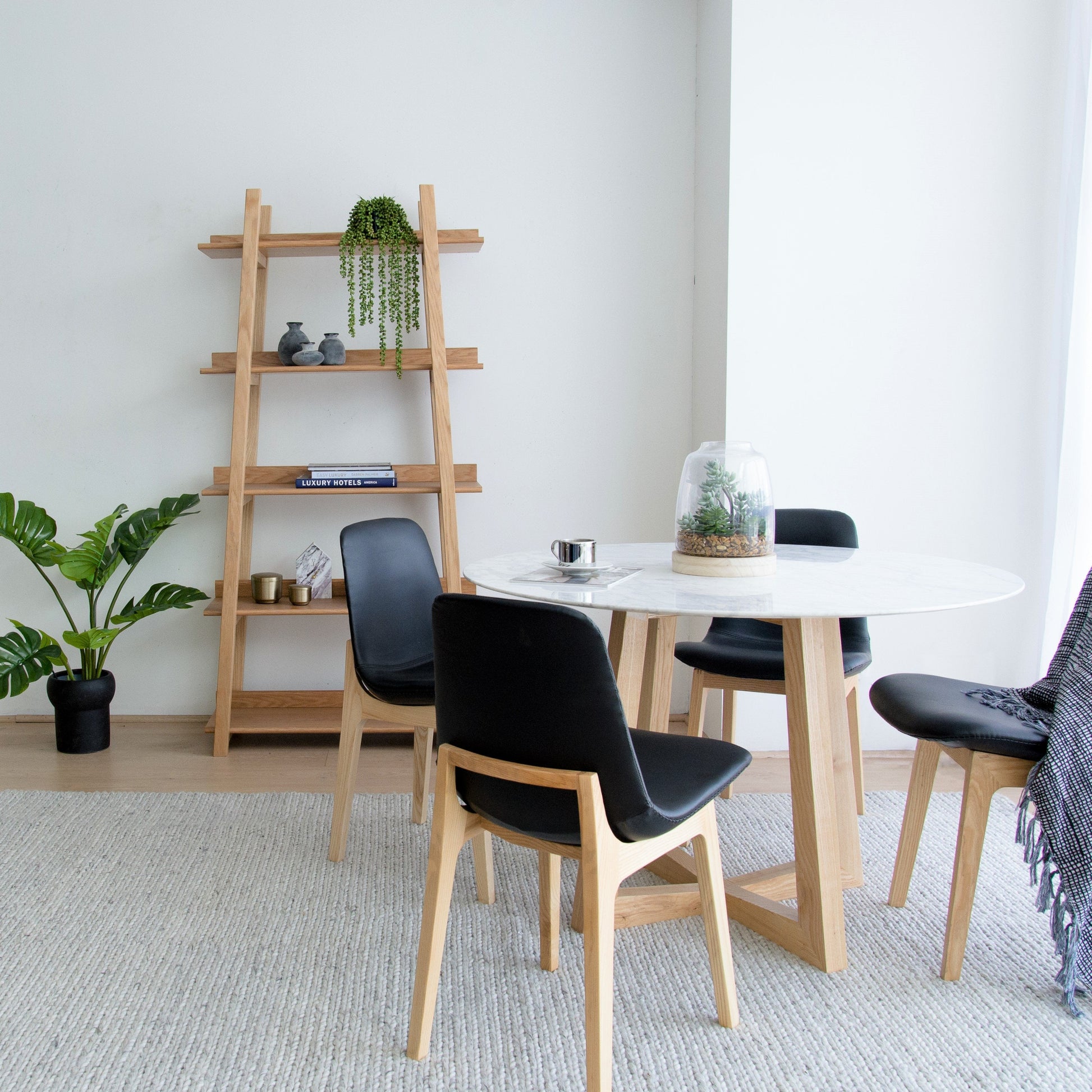Elevate your dining room décor and enjoy the beautiful contrast marble makes with wood in the Zodiac 1.15m Marble Round Dining Table - Natural.